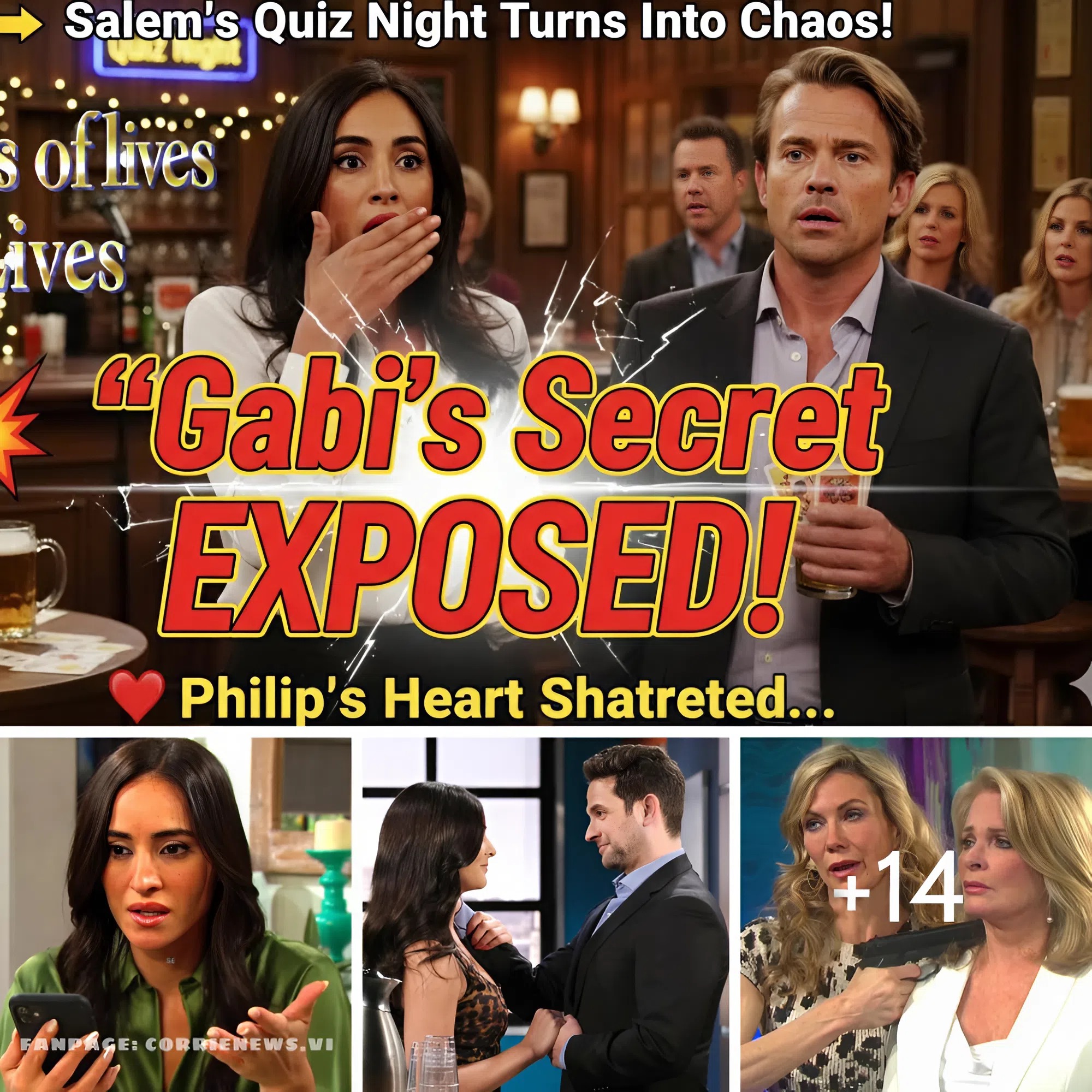 Salem is about to experience one of its most explosive weeks yet, as secrets, betrayals, and shocking revelations threaten to destroy lives and love stories before they’ve even had the chance to bloom. This time, the storm centers around Gabi Hernandez, whose carefully constructed lies and manipulations are about to come crashing down in spectacular fashion. What begins as a cheerful trivia night at the Brady Pub turns into an evening that exposes her darkest secret — one that could end her romance with Philip Kiriakis before it ever truly begins.
