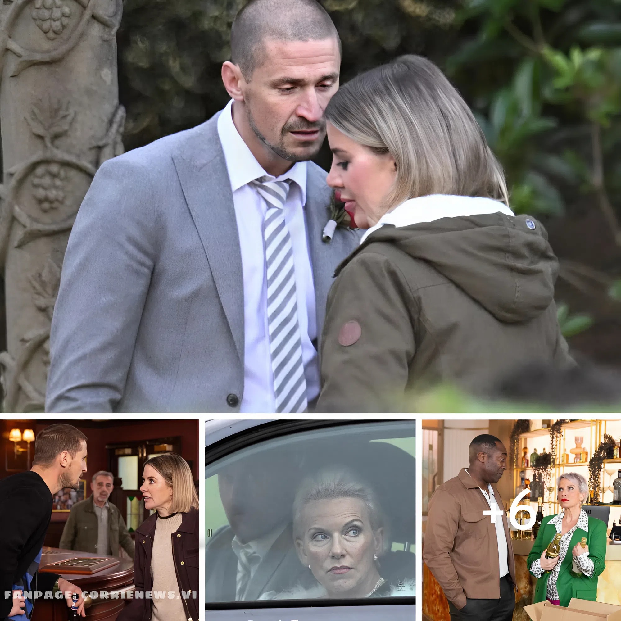 Paparazzi photos obtained by Digital Spy show the two characters having a tense argument outside the wedding venue, with Carl also seen clutching a bottle in a drunken state.