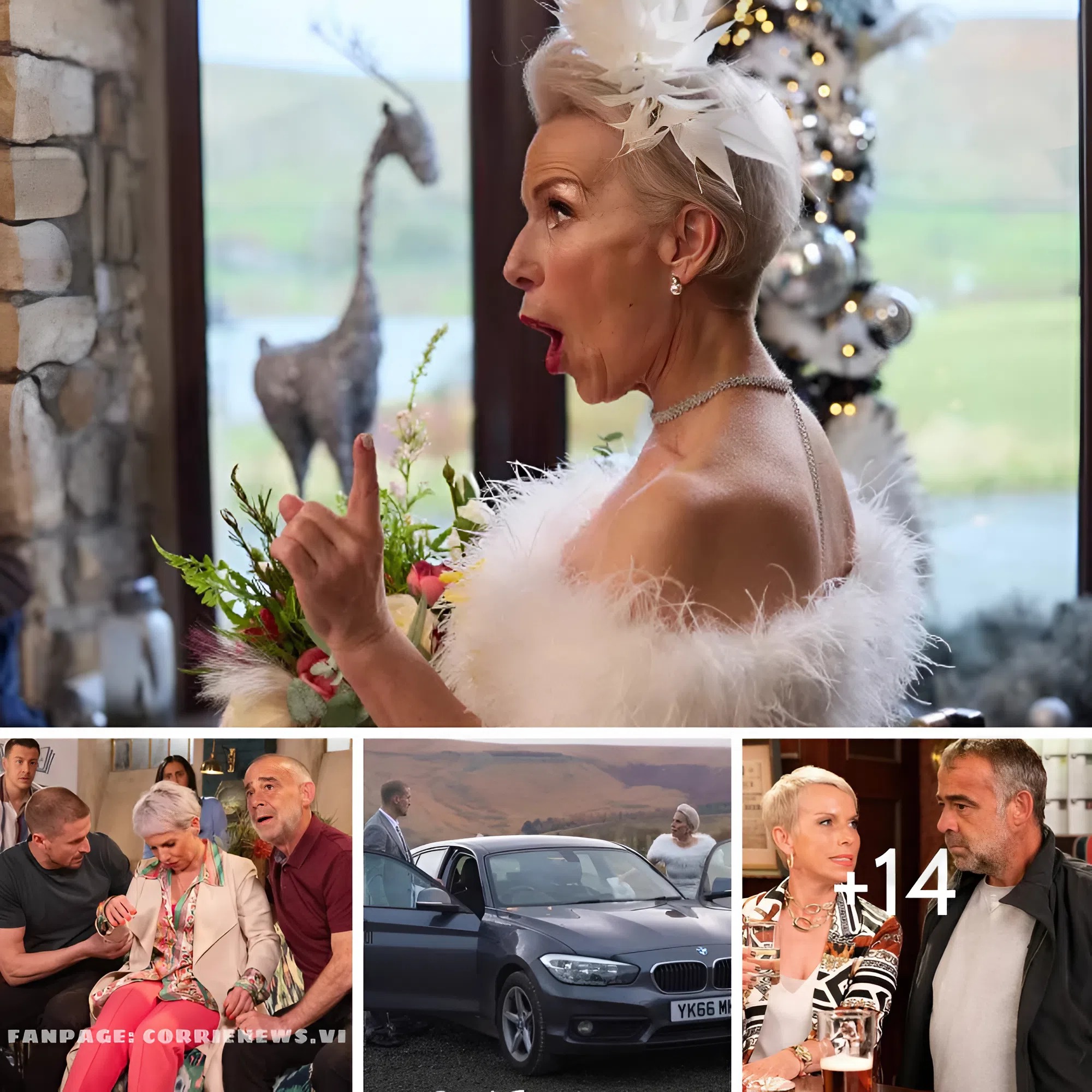 In the epic hourlong soap crossover Corriedale, worlds literally collide when the villagers of Emmerdale meet the residents of Coronation Street on a lonely nighttime roadside on a stage set for chaos. Several vehicles are involved in the collision, including a minibus full of Debbie’s wedding guests!