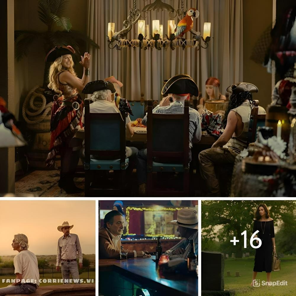 Larter says throwing cacio e pepe at Thornton’s character was “very fun”. “You can just feel the connectivity that has happened this season, and especially with Sam being part of the cast now, and the depth of moments that he brings to the pirate dinner. There’s Ainsley and Angela up to their shenanigans, and then we get to look over and have Sam Elliott just looking at you, and it just brings a different moment to these scenes,” she said.