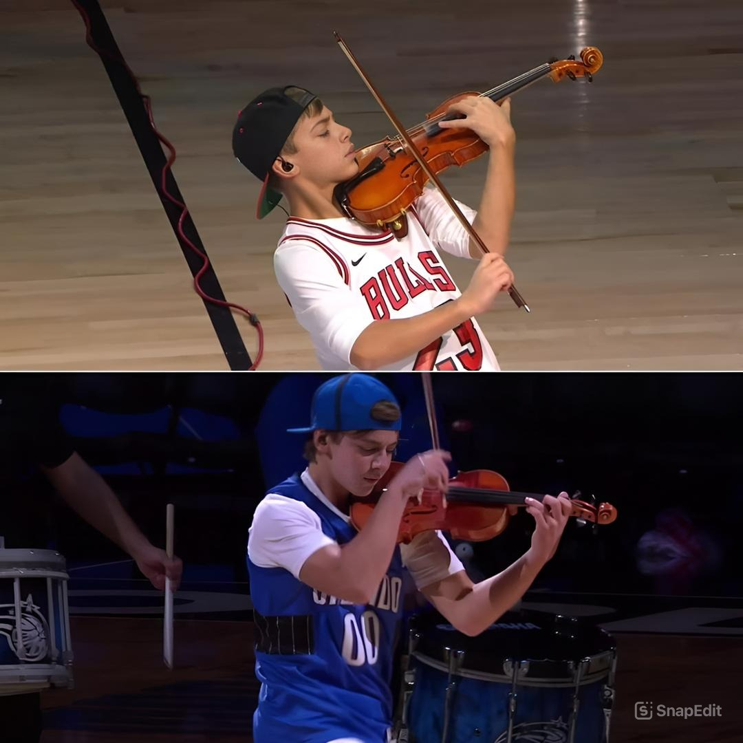Giovanni Mazza didn’t just perform; he executed a total takeover. As he stepped onto the center court logo—the same floor where legends like LeBron James and Stephen Curry have made history—he carried with him a level of poise that felt far beyond his thirteen years. What followed was a 90-second blur of flying fingers, explosive hip-hop beats, and a genre-bending violin style that has officially set the internet on fire.