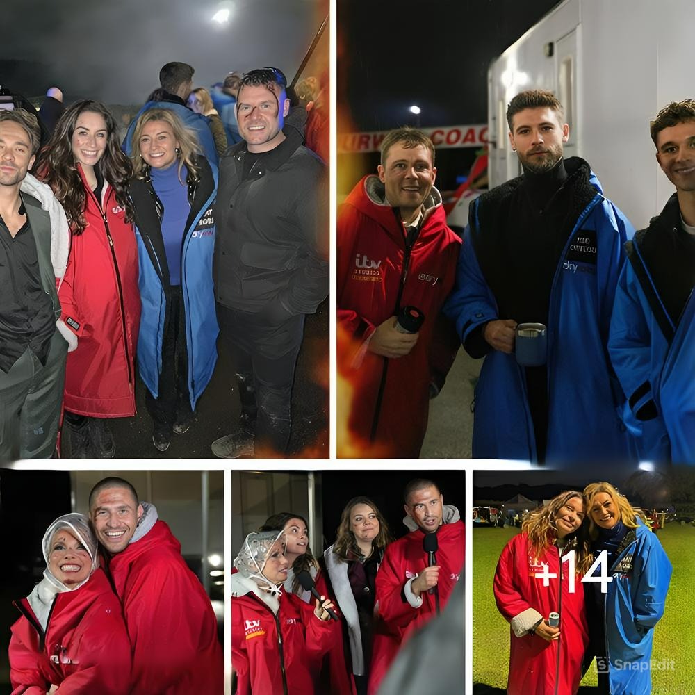 In another she joins co-star Danny Miller (Aaron Dingle) looks happy and relaxed next to Weatherfield’s Jack P Shephard (David Platt) and Julia Goulding (Shona Platt).